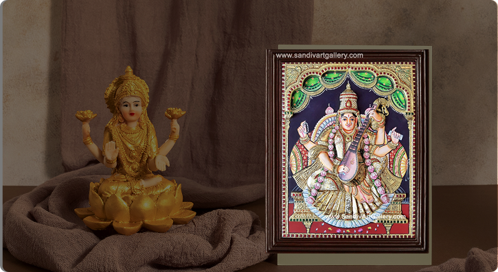 I have got 5 Tanjore Paintings. All the Tanjore Paintings were awesome. Sandhya was too patient, she shared me frequent updates with pictures, and considered even my minor requirements like matching saree & dothi colors and Vishnu Laxmi on one lotus and Brahma Saraswathi on another lotus. They did an astounding job.