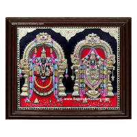 Traditional Handmade Balaji Tanjore Painting made with 22 Karat gold foil, precious & semi precious stones and poster colours. Framed with High quality Teak Wood to add divinity to your pooja rooms.