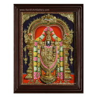 Traditional Handmade Balaji Tanjore Painting made with 22 Karat gold foil, precious & semi precious stones and poster colours. Framed with High quality Teak Wood to add divinity to your pooja rooms.
