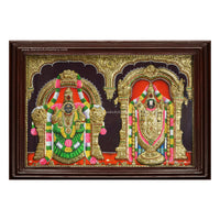 Traditional Handmade Balaji Tanjore Painting made with 22 Karat gold foil, precious & semi precious stones and poster colours. Framed with High quality Teak Wood to add divinity to your pooja rooms.