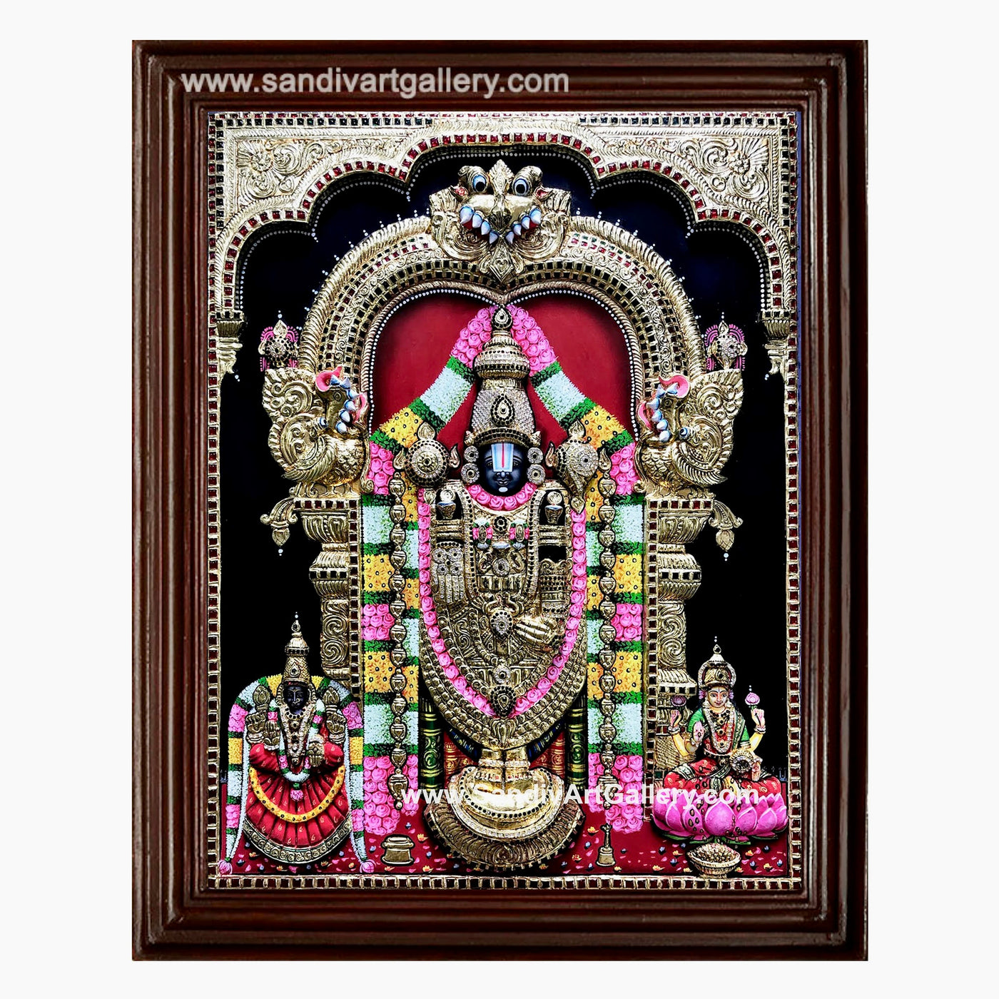 Balaji with alamelumanga and Lakshmi 3D Embossed Tanjore painting