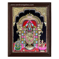 Balaji with Lakshmi and Thayar 3D Embossed Tanjore Painting - Classic Frame / 18x14 / Yes