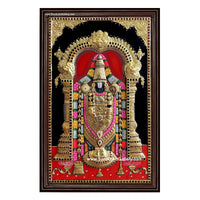 Traditional Handmade Balaji Tanjore Painting made with 22 Karat gold foil, precious & semi precious stones and poster colours. Framed with High quality Teak Wood to add divinity to your pooja rooms.