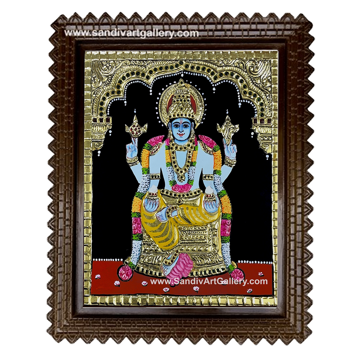 Traditional Handmade Balaji Tanjore Painting made with 22 Karat gold foil, precious & semi precious stones and poster colours. Framed with High quality Teak Wood to add divinity to your pooja rooms.