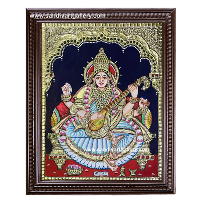 Traditional Handmade Balaji Tanjore Painting made with 22 Karat gold foil, precious & semi precious stones and poster colours. Framed with High quality Teak Wood to add divinity to your pooja rooms.