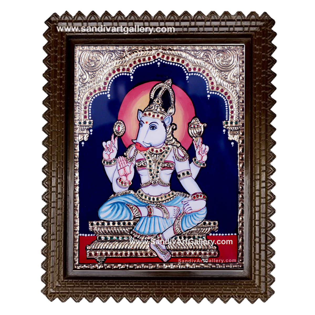Traditional Handmade Balaji Tanjore Painting made with 22 Karat gold foil, precious & semi precious stones and poster colours. Framed with High quality Teak Wood to add divinity to your pooja rooms.