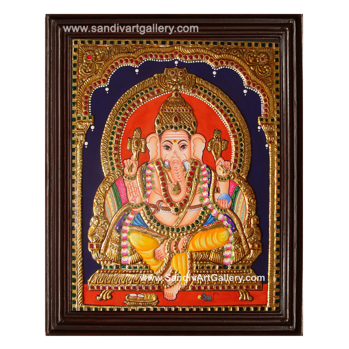 Ganesh Ji Tanjore Painting - Classic Frame / 10x8