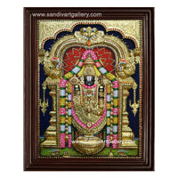 Traditional Handmade Balaji Tanjore Painting made with 22 Karat gold foil, precious & semi precious stones and poster colours. Framed with High quality Teak Wood to add divinity to your pooja rooms.