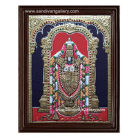 Traditional Handmade Balaji Tanjore Painting made with 22 Karat gold foil, precious & semi precious stones and poster colours. Framed with High quality Teak Wood to add divinity to your pooja rooms.