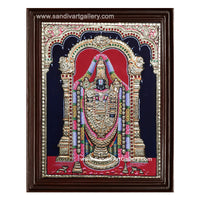 Traditional Handmade Balaji Tanjore Painting made with 22 Karat gold foil, precious & semi precious stones and poster colours. Framed with High quality Teak Wood to add divinity to your pooja rooms.