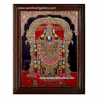 Traditional Handmade Balaji Tanjore Painting made with 22 Karat gold foil, precious & semi precious stones and poster colours. Framed with High quality Teak Wood to add divinity to your pooja rooms.