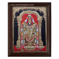 Traditional Handmade Balaji Tanjore Painting made with 22 Karat gold foil, precious & semi precious stones and poster colours. Framed with High quality Teak Wood to add divinity to your pooja rooms.