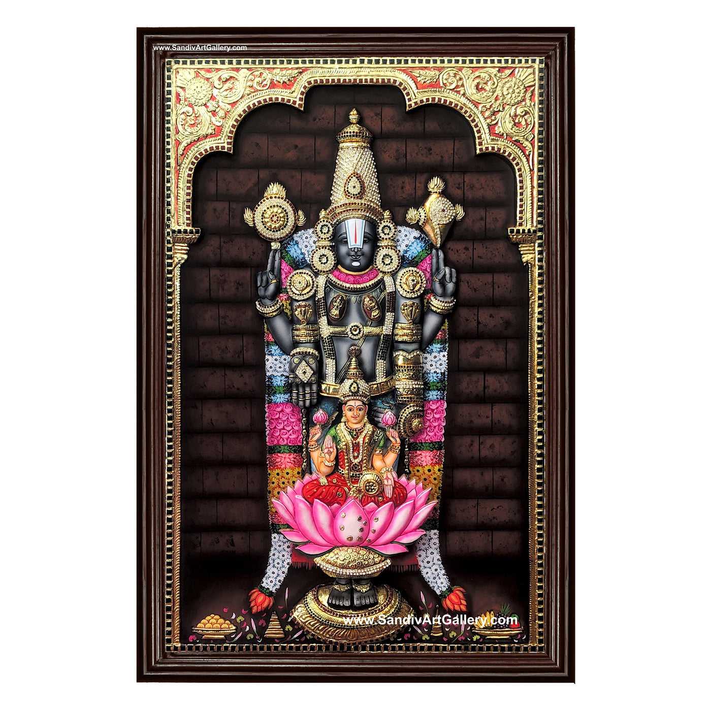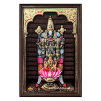 Traditional Handmade Balaji Tanjore Painting made with 22 Karat gold foil, precious & semi precious stones and poster colours. Framed with High quality Teak Wood to add divinity to your pooja rooms.