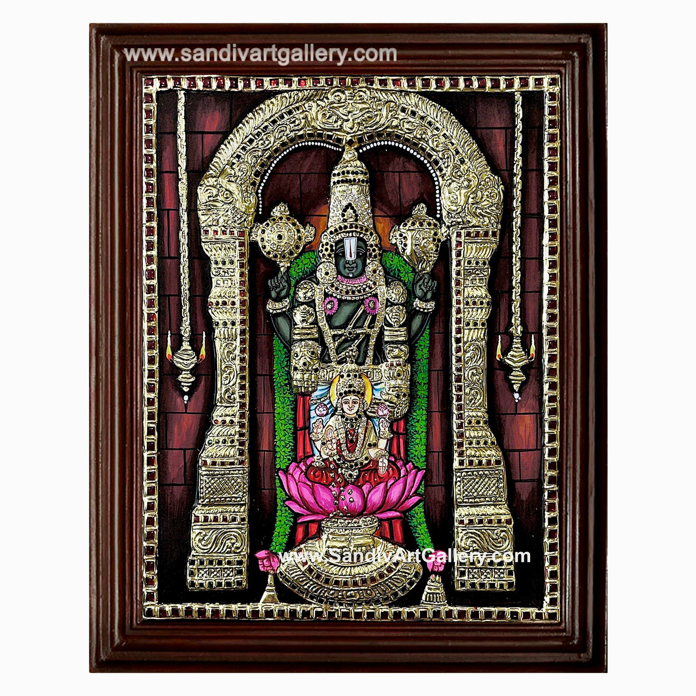 Balaji with Lakshmi Semi Embossed Tanjore Painting - Classic Frame / 12x10 / Yes