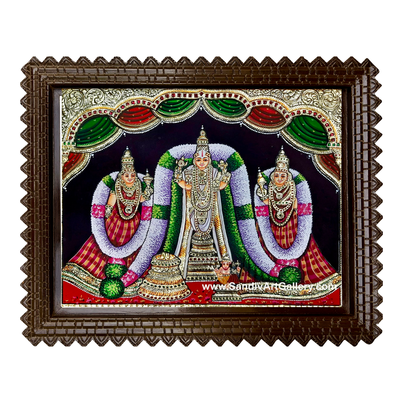 Maha Vishnu Sridevi Bhudevi Tanjore Painting