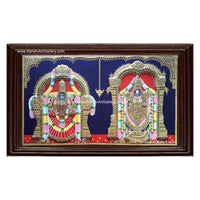 Tirupathi Balaji Padmavathi Thayar Semi Embossed Tanjore Painting - Classic Frame / 12x20 / No