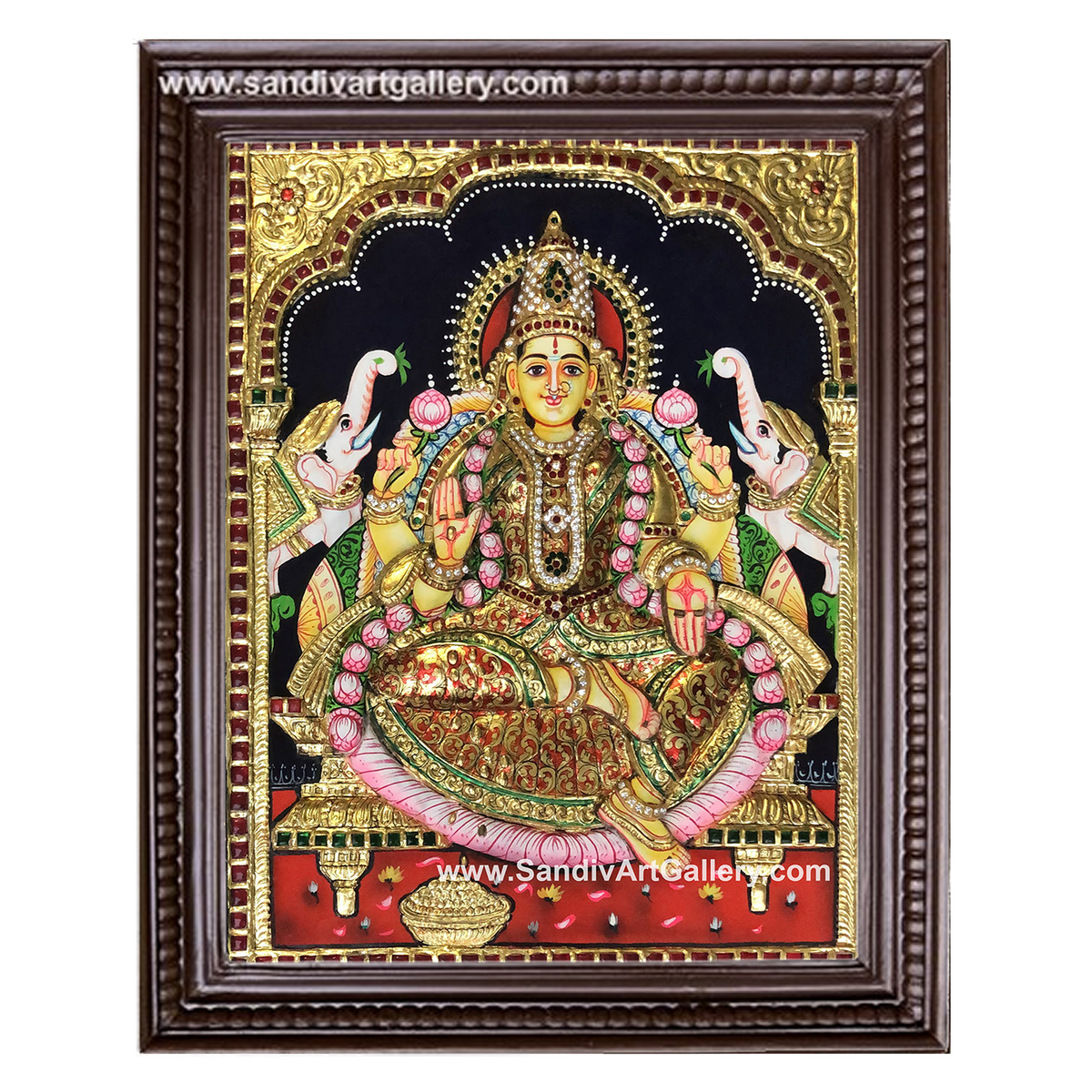 Gaja Lakshmi 3D Embossed Tanjore Painting