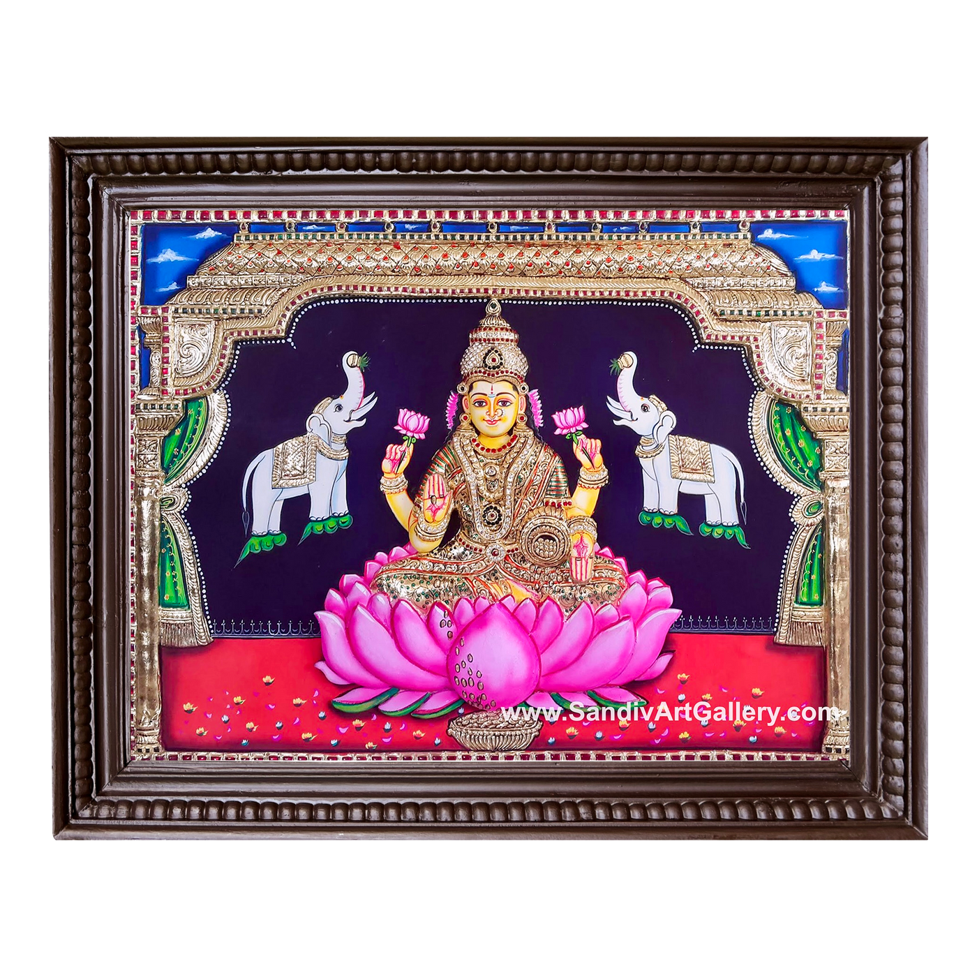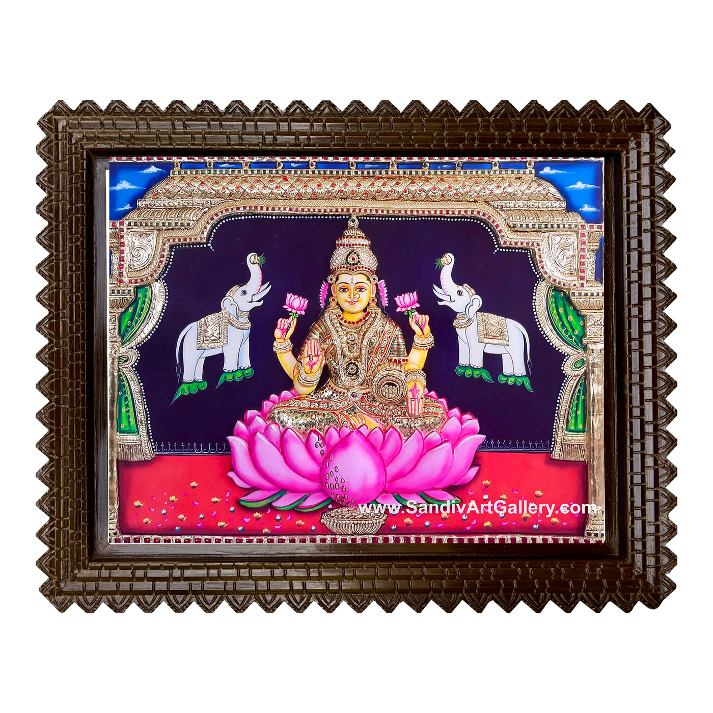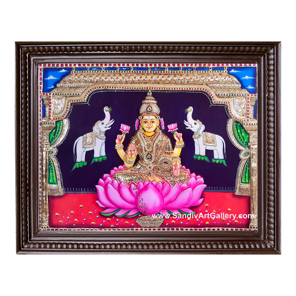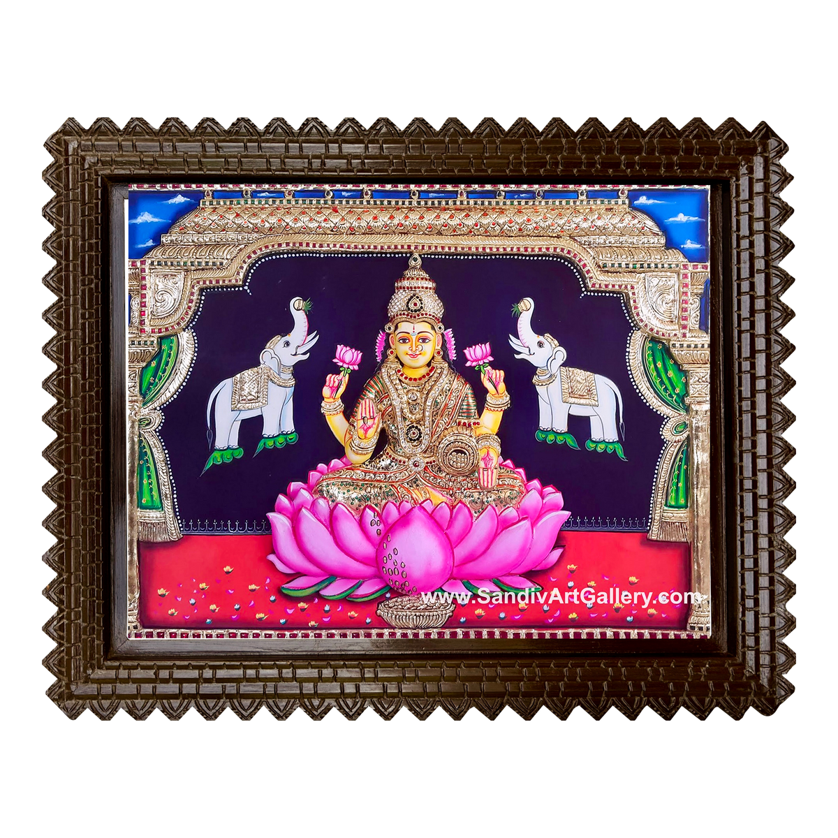 Lakshmi with Elephants 3D Super Embossed Tanjore Painting - Classic Frame / 15x12 / Yes