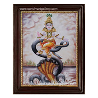 Traditional Handmade Balaji Tanjore Painting made with 22 Karat gold foil, precious & semi precious stones and poster colours. Framed with High quality Teak Wood to add divinity to your pooja rooms.