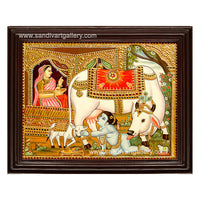 Krishna with Cow Tanjore Painting - Classic Frame / 16x20