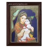 North Indian Style Yasodha Krishna Tanjore Painting - Classic Frame / 12x10