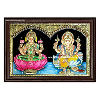 Ganesha and Lakshmi Small Tanjore Painting - Classic Frame / 8x12
