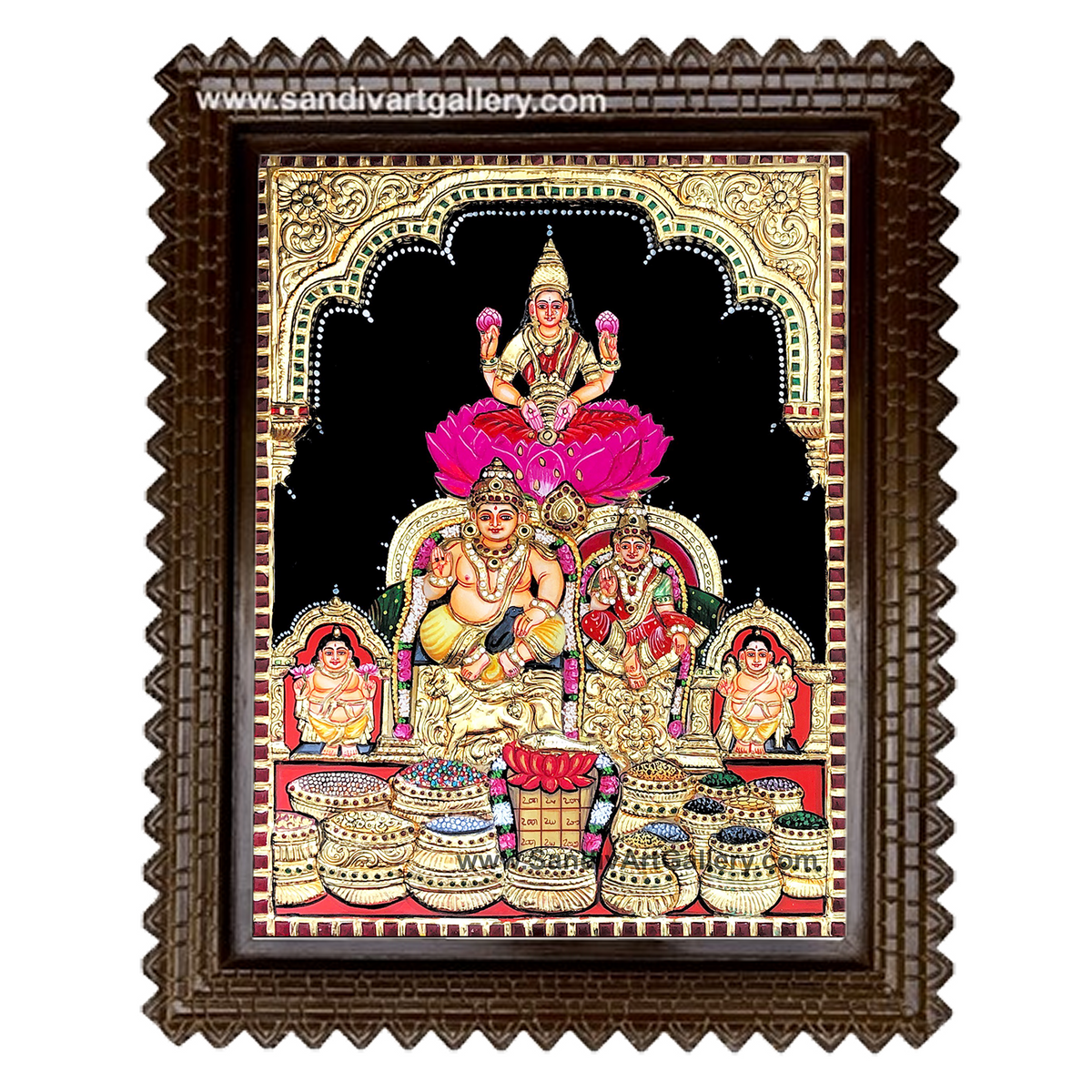 Kubera Lakshmi 3D Super Embossed Tanjore Painting - Classic Frame / 20x16 / Yes