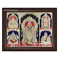 Balaji Vinayaka Lakshmi Saraswathi and Murugan- 5 God Panel Semi Embossed Tanjore Painting - Classic Frame / 24x36