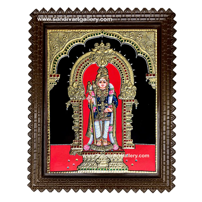 Murugan in Raja Alangaram Tanjore Painting - Classic Frame / 15x12
