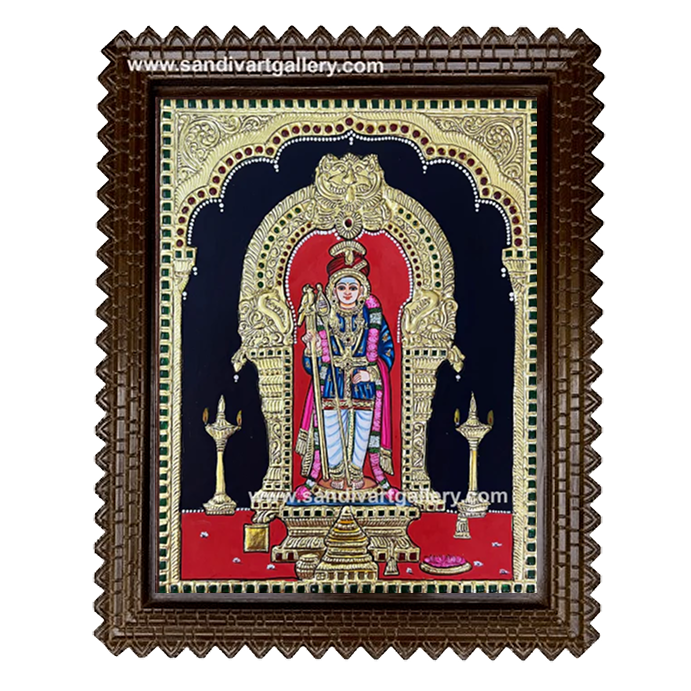 Traditional Handmade Balaji Tanjore Painting made with 22 Karat gold foil, precious & semi precious stones and poster colours. Framed with High quality Teak Wood to add divinity to your pooja rooms.