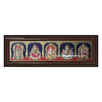 Vinayagar Lakshmi Balaji Saraswathi and Murugan- 5 Panel Pooja 2D Embossed Tanjore Painting - Classic Frame / 12x50