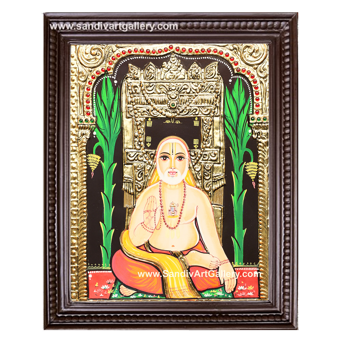 Traditional Handmade Balaji Tanjore Painting made with 22 Karat gold foil, precious & semi precious stones and poster colours. Framed with High quality Teak Wood to add divinity to your pooja rooms.