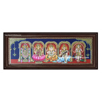 Balaji Lakshmi Saraswathi Ganesha and Murugan- 5 God Panel Tanjore Painting1 - Classic Frame / 12x50