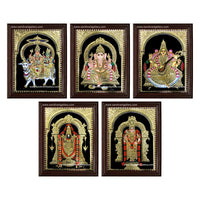 Balaji Vinayagar Lakshmi Saraswati and Shivan Parvati- Pooja Room Tanjore Painting