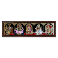 Ganesha Gaja Lakshmi Saraswathi Balaji and Valli Deivanai Murugan - 5 God Panel Tanjore Painting