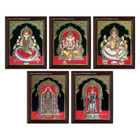 Venkateshwara Lakshmi Vinayahar Saraswati and Palani Raja Alangara Murugar- Pooja Room Tanjore Paintings - Classic Frame / 12x10
