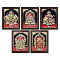 Vinayagar Lakshmi Balaji Saraswathi and Murugan- Pooja Room 3D Embossed Tanjore Paintings - Classic Frame / 15x12
