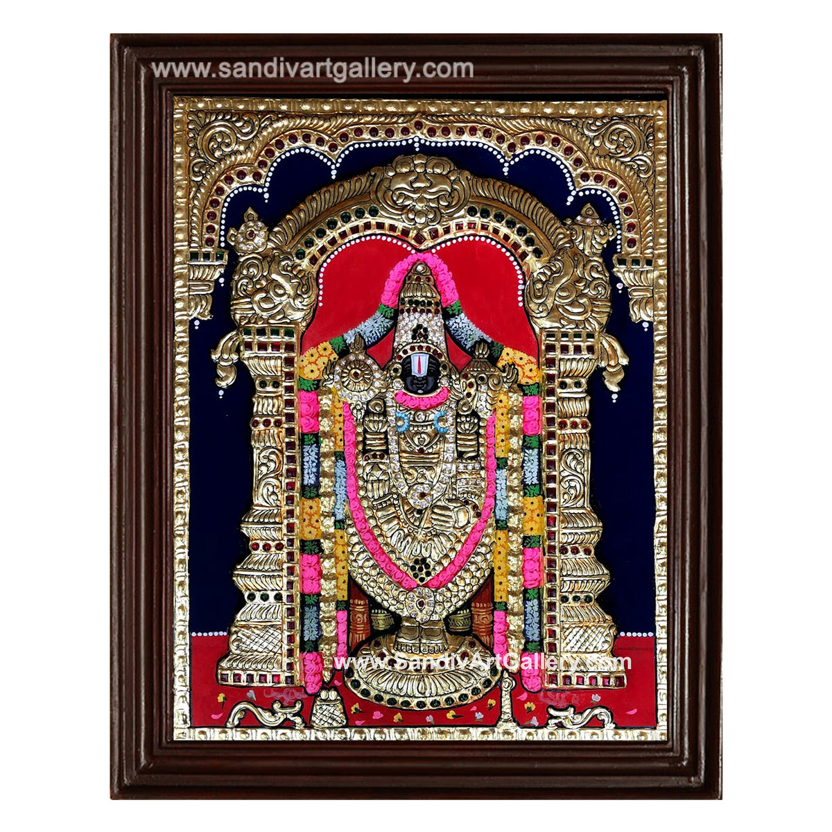 Traditional Handmade Balaji Tanjore Painting made with 22 Karat gold foil, precious & semi precious stones and poster colours. Framed with High quality Teak Wood to add divinity to your pooja rooms.