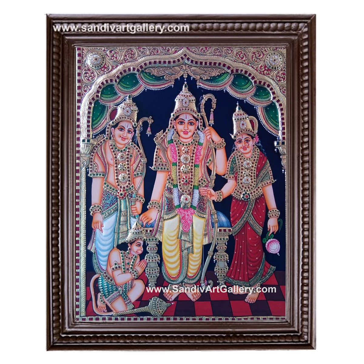 Ramar Sita Lakshmanan Hanuman Semi Embossed Tanjore Painting - Classic Frame / 16x20 / Yes