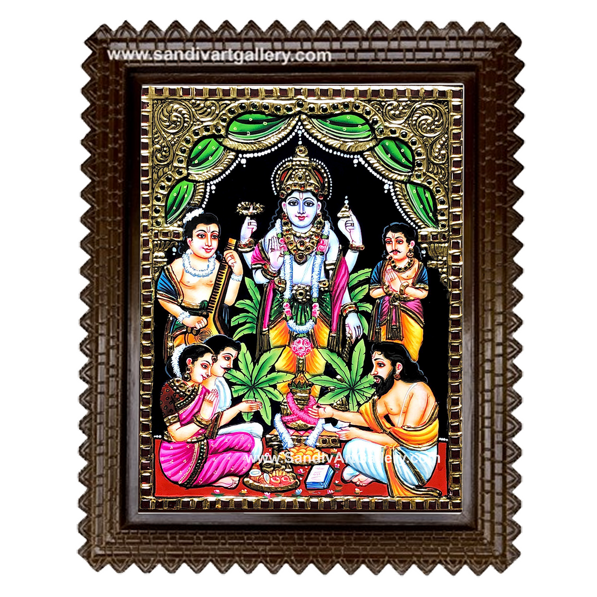 Sathya Narayana Swamy Tanjore Painting 3 - Classic Frame / 15x12