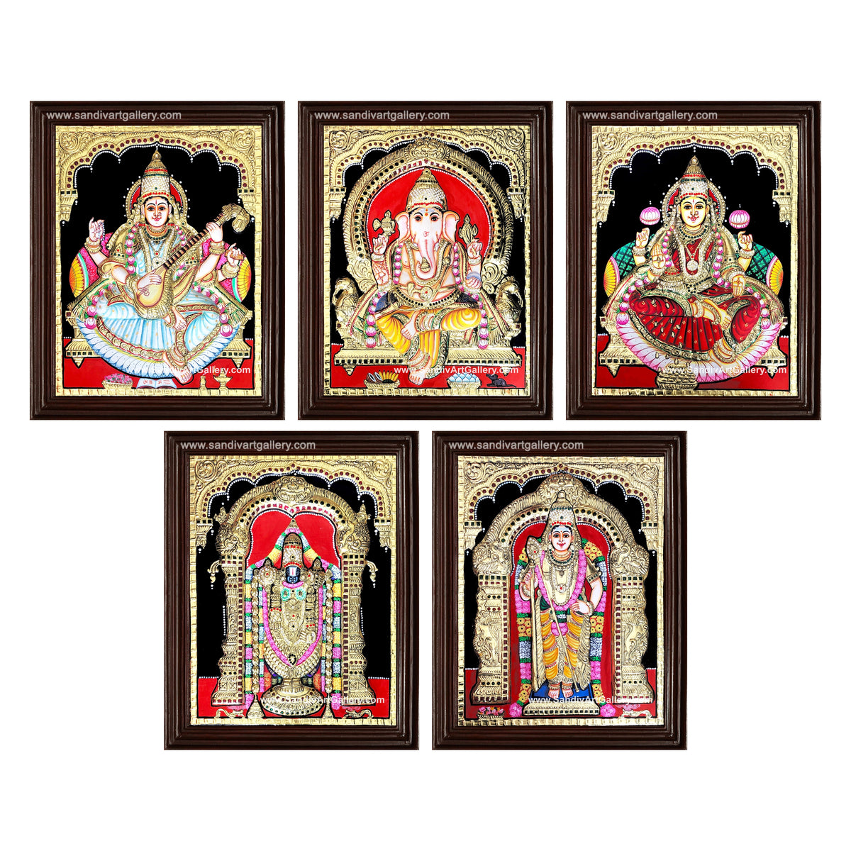 Inform when this item available Vinayahar Lakshmi Perumal Saraswathi and Subramanya Swamy- Pooja Room Semi Embossed Tanjore Paintings