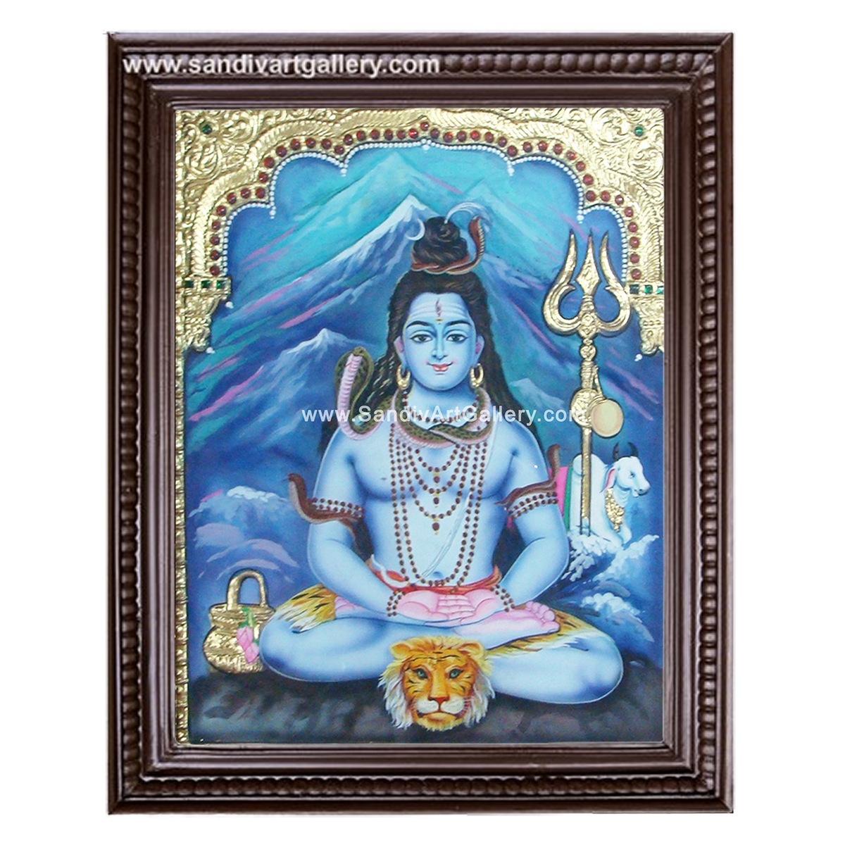 Lord Shivan- Mahadev Tanjore Painting - Classic Frame / 15x12
