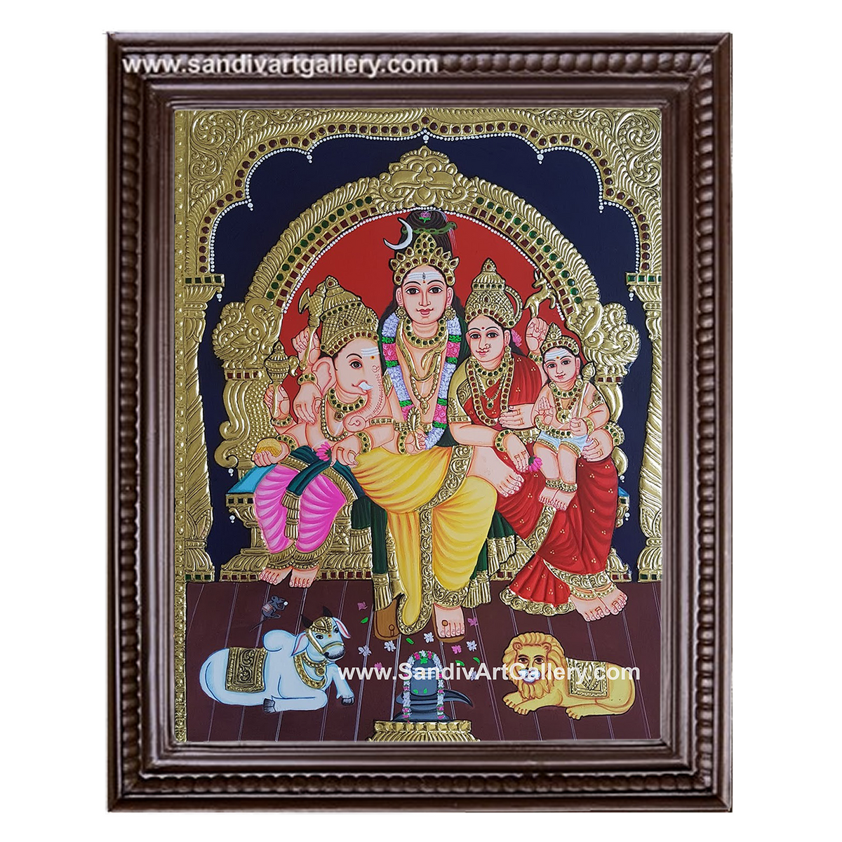 Shiva Parvati Vinayagar Murugar Tanjore Painting