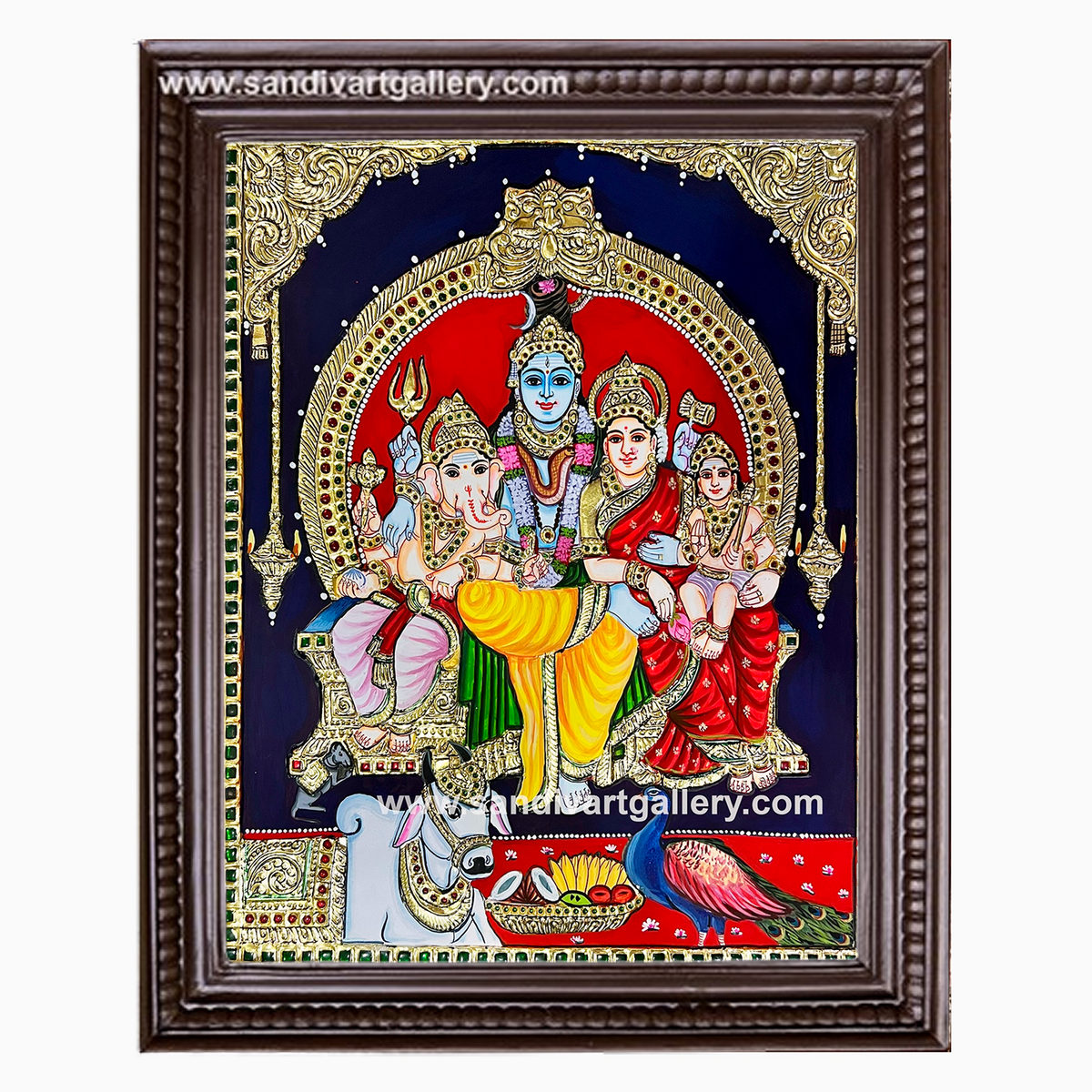 Shivan Parvathi Devi Ganesha Karthikeya Tanjore Painting