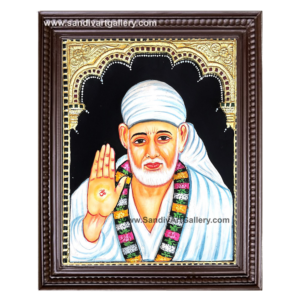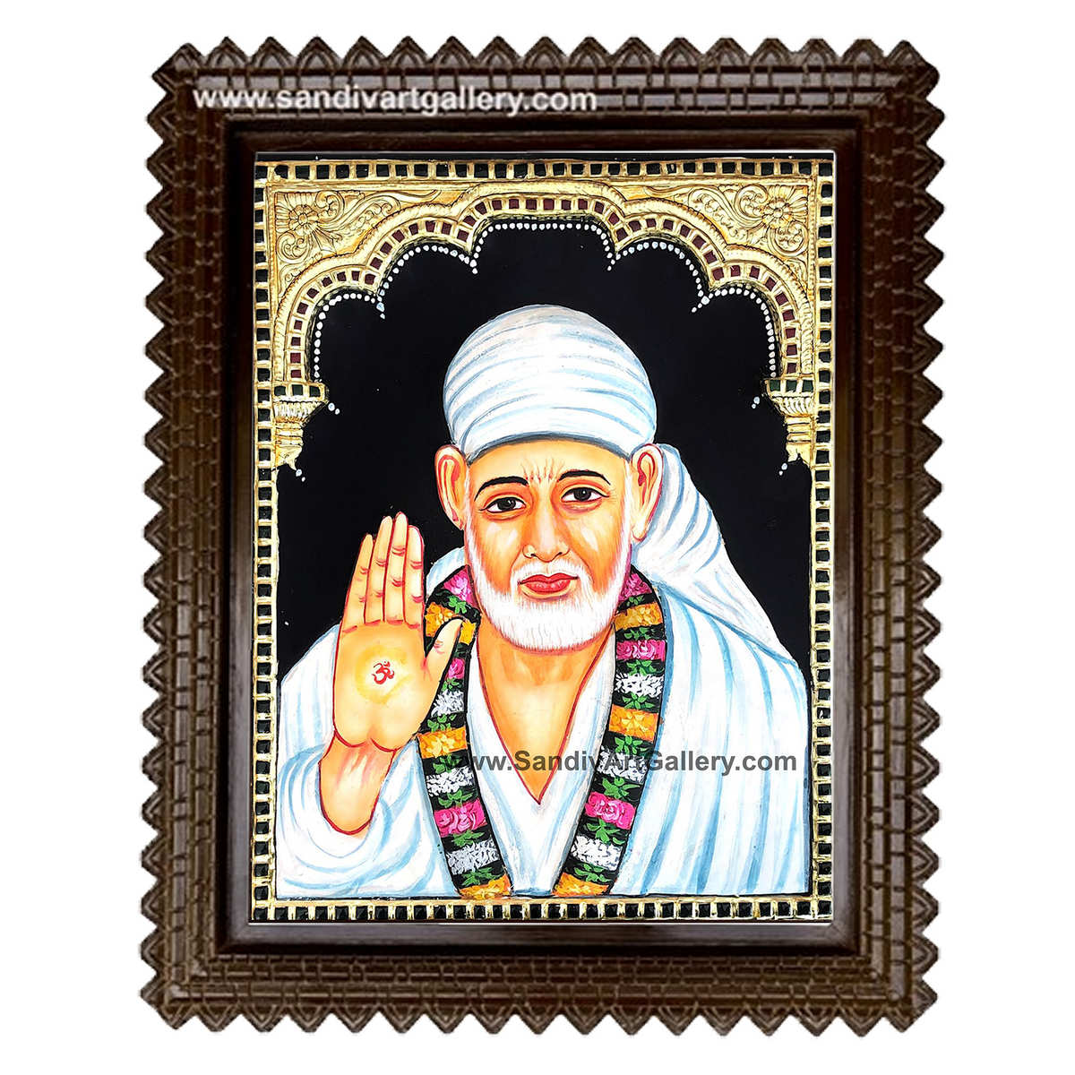 Saibaba 3D Embossed Tanjore Painting - Classic Frame / 15x12