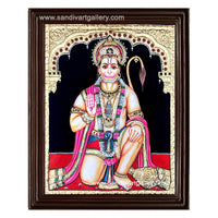 Veera Hanuman Semi Embossed Tanjore Painting - Classic Frame / 12x10